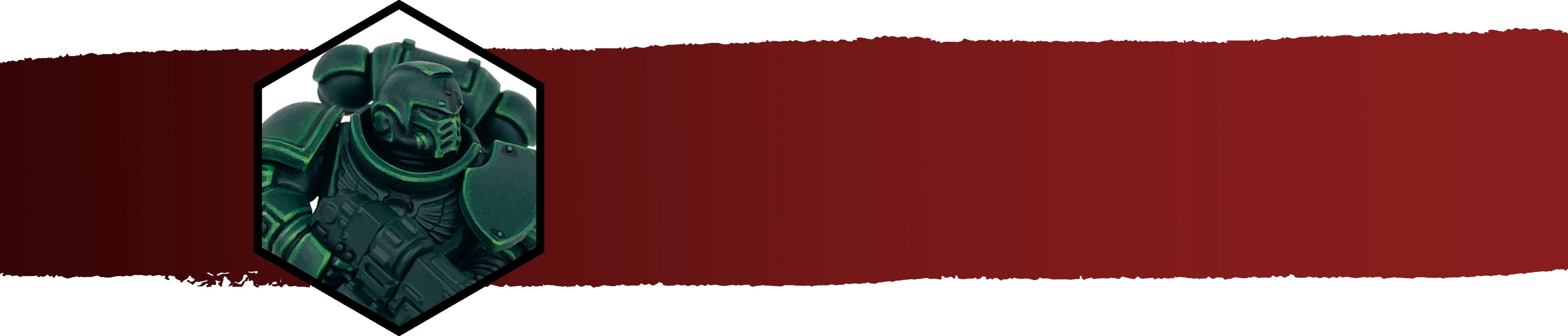 The chapter symbol on the shoulder pad as well as the sword on the helmet were basecoated with Warpaints Fanatic Uniform Grey.