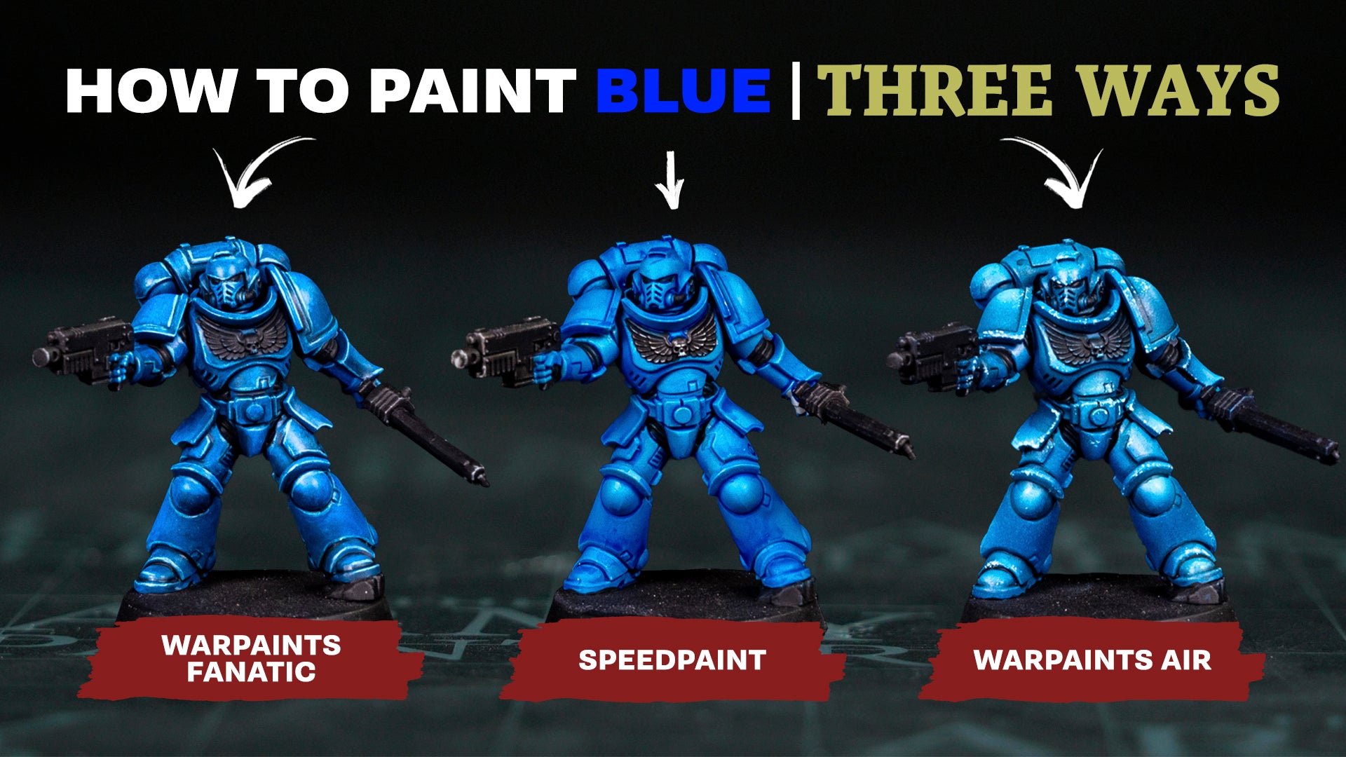 In this installment, we join Studio Painter Steffen as he paints one of the most regal colours - blue! Not satisfied with showing only one way to paint this fundamental colour, he instead shows off how to paint a Speedpaint, Warpaints Fanatic, and Air version of the same Space Marine. Whether you’re looking to get your models on the table quickly with Speedpaint, meticulously layer them with Warpaints Fanatic, or get the sickest and smoothest fades imaginable with Warpaints Air, we have a solution for you within our vast and versatile paint ranges.