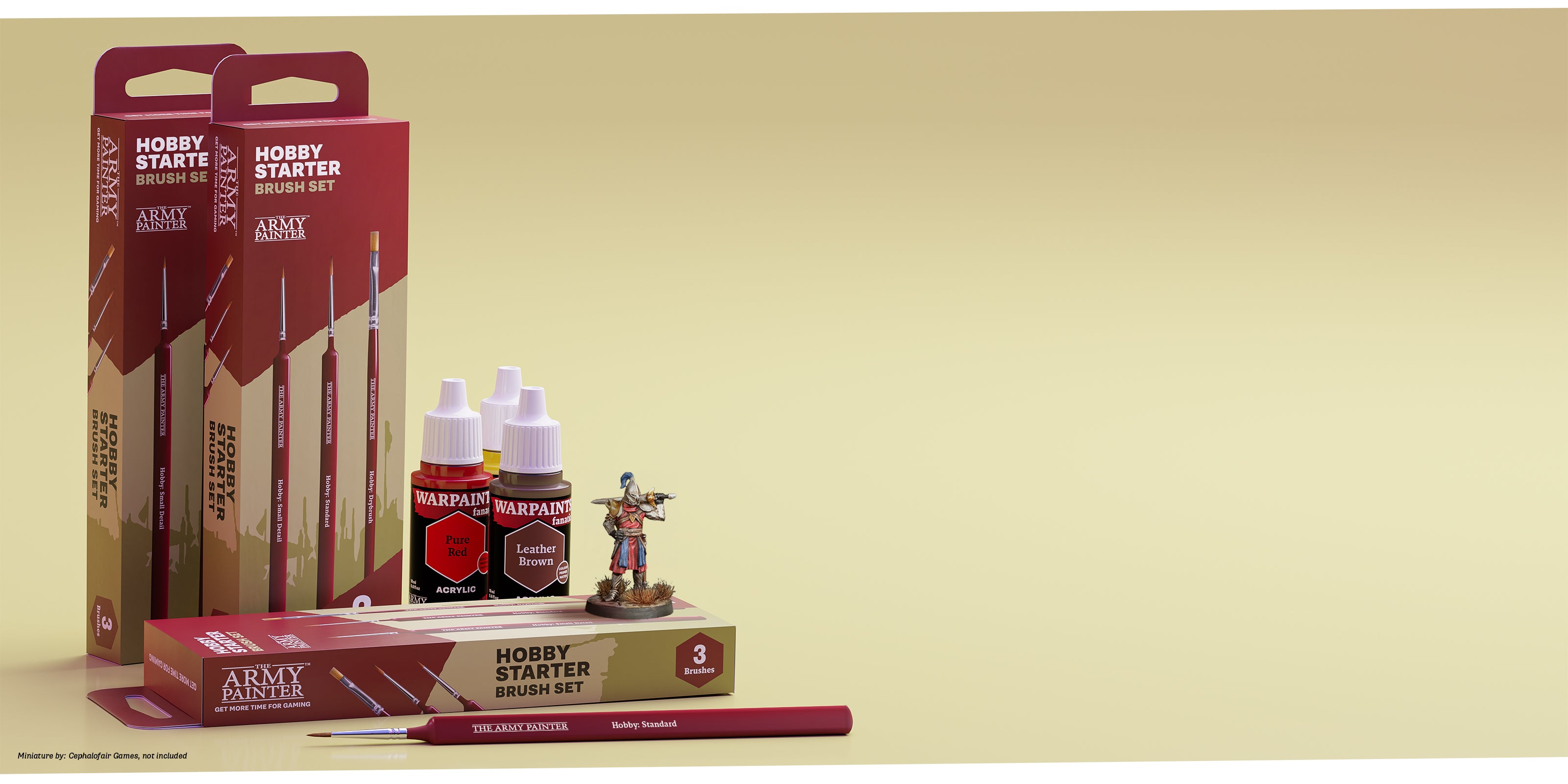 Perfect for new painters, The Army Painter Hobby Starter Brush Set includes three versatile brushes - each designed for a different stage of your miniature painting process.  From basecoating to fine details, these brushes are built for balance, durability, and consistent performance, now with eco-friendly packaging. The set includes a Standard Brush for basecoating, a Small Detail Brush with an ultra-fine tip for pinpoint accuracy, and a Drybrush with a flat top and coarse bristles. Begin your hobby journey with the same trusted quality that’s powered painters for years.