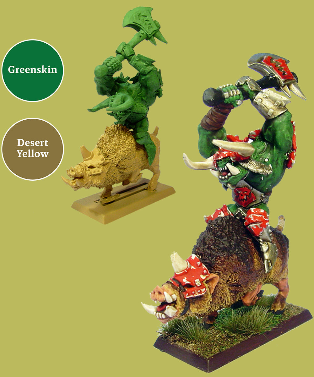 The more you can let the spray do the hard work the faster your army will be complete. Steeds in particular are a good example of where you could use different colours and save time compared to basecoating with a brush. Glue the models together with Super Glue once dry. Here is just one example of this, but the possible combinations are endless.