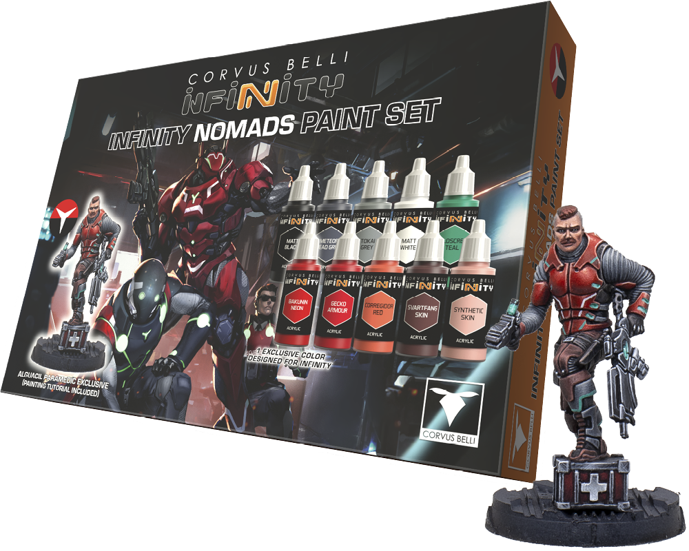 We at The Army Painter are proud to present the official paints for Infinity! Each set includes 10 high-quality, heavily-pigmented, water-based acrylic paints (18ml) that utilize the industry-leading Warpaints Fanatic formulation and an exclusive miniature FREE!